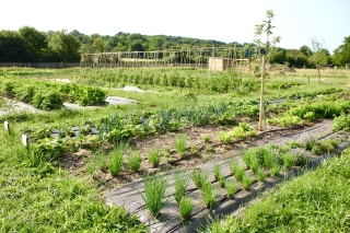 Labellisée AB, ces parcelles n’ont pas requis de phase intermédiaire puisqu’elles n’étaient pas exploitées auparavant. Amandine Denoue, 35 ans, chef d’exploitation du site détaille : « C’est un avantage considérable qui nous a permis de lancer la plantation sans attendre et d’obtenir une certaine valorisation de notre production auprès de nos consommateurs (les résidents des foyers de seniors) » avant de nuancer : « Mais, cette labellisation a des limites. Par exemple, nous ne pouvons pas utiliser de semences paysannes en bio. Cela est contraignant car nous pensions organiser des trocs de graines avec les habitants – dans une optique de créer des échanges techniques et sociaux – et nous ne pouvons pas car il faudrait connaître l’origine et les conditions de production (Bio certifié exclusivement) de chaque type de graines produites par les habitants. Malgré tout, nous sommes en train de chercher des solutions pour lever ce carcan, au moins sur une partie de l’exploitation ».