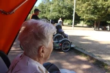 Sagement assise sur la banquette, plaid sur les genoux et une ombrière la protégeant du soleil, Monique est prête pour partir. En neuf mois, il s’agit de sa quatrième balade avec l’association. Elle a même annulé la visite de ses nièces pour pouvoir y participer. Une fois la ceinture bouclée, Patrick enclenche la machine. Habitant de la commune, il en connaît les moindres recoins et anecdotes. « J’ai rédigé un livret que je distribue à tous les bénévoles, afin de leur donner quelques anecdotes quant à l’histoire et au passé de Sainte-Foy-lès-Lyon », explique-t-il, tout en invitant Monique à porter son regard sur le portail d’une propriété bourgeoise, laissant apparaître un jardin arboré et fleuri. « À l’époque, des industriels de l’automobile et de la soie résidaient ici et souhaitaient faire concurrence au parc de la Tête d’or en aménageant de nombreux parcs », raconte-t-il à Monique, fascinée par la taille des arbres et prête à reconnaître les tilleuls qui bordent les allées. Pour rendre cette balade d’une heure et demie la plus agréable possible, le conducteur choisit de passer par les nombreux parcs de la ville. Le premier arrêt se fait ainsi sur une place, célèbre pour sa vue surplombant Lyon et sa métropole. L’occasion, pour les Lyonnais et Lyonnaises d’origine, d’échanger quelques bribes de souvenirs. « Ce n’est pas pour rien que Sainte-Foy-lès-Lyon s’appelle le balcon vert de Lyon », sourit Patrick, avant de reprendre la route pour un second parc, où joueurs de pétanque et enfants se retrouvent sous un soleil de fin d’été. « Il arrive que les personnes transportées échangent des paroles ou un geste avec les enfants, raconte Patrick. Finalement, le vélo est un prétexte et un moyen de se déplacer plus facilement, puisque le plus important, c'est de sortir les résidents et de créer du lien intergénérationnel… On s'arrête pour provoquer une discussion lorsque l’on croise des personnes prêtes à échanger, ou des enfants curieux ».
