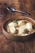 Derrière ces choix culinaires assumés et cette force de caractère, se dessine un itinéraire singulier, où la cuisine s’est imposée très tôt. Christophe Geoffroy commence la restauration à 14 ans, en apprentissage, les jeudis, pendant les vacances et les week-ends. Mais ses parents, en désaccord avec ses choix professionnels, le poussent à faire du droit. « Il faut dire qu’à l’époque, les cuisiniers n’avaient pas bonne presse. Ils étaient méprisés, en quelque sorte, on mangeait, mais on ne voulait pas les voir. C’étaient ceux qui nourrissaient les cochons derrière la cuisine après avoir lavé la vaisselle ». Le futur chef deviendra conseiller juridique, tiendra un cabinet de conseil juridique, deviendra avocat et même consul. Malgré cette carrière juridique brillante, la cuisine ne le quitte jamais. « J’ai acheté mon premier restaurant à 19 ans. J’étais en deuxième année d’études ». À 54 ans, il abandonne définitivement le juridique pour se consacrer pleinement à la restauration. Une restauration gastronomique, haut de gamme, exigeante, mais jamais déconnectée du réel. « Piment de Bresse, safran de la Dombes, mes seuls produits importés sont le poivre et la vanille ». Le chef a toujours sillonné les fermes à la rencontre des producteurs et pour récupérer les produits déclassés. « Trop gros, trop petits, de forme originale… ceux que d’autres jetaient avant, j’ai toujours travaillé avec ». Cet attachement aux territoires et à leurs richesses est d’autant plus fort que pour Christophe Geoffroy, un produit ne peut pas vraiment exister hors de son sol, de son contexte. « Prenez un punch à la Martinique, au bord de la plage, vous allez le trouver grandiose. Maintenant, prenez exactement les mêmes produits et faites la même recette chez vous en novembre, cela n’a rien à voir. C’est aussi pour cela que vous ne verrez jamais un bavarois aux fruits de la passion à l’une de mes cartes. Importer des mangues du Pérou ? Certainement pas ! ». Parmi ses « plats signatures » figurent les quenelles, qu’elles soient cuisinées à la carpe de la Dombes, au brochet ou encore à la truite sauvage de Haute-Savoie, « de vraies bonnes quenelles à la cuillère », accompagnées de sa sauce Geoffroy, créée en 1996 (jus de veau, crème fraîche et véritables graines de moutarde de Dijon). Autre plat aindinois emblématique de sa carrière : la volaille de Bresse revisitée façon pot-au-feu, cuite doucement dans un bouillon et servie avec des légumes de saison.