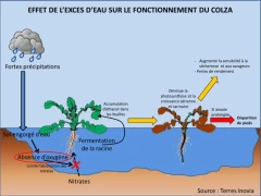 Ces fortes précipitations entraînent une anoxie racinaire dont le colza est très sensible à cette période (voir graphique 1)