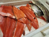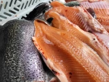 À la fin de leur vie, les truites pèsent trois à quatre kilos. Quelques jours avant leur prélèvement, elles sont isolées, afin d’être à jeun lors de l’abattage. Pêchées à l’épuisette, elles rejoignent l’atelier de transformation en quad, dans des cuves sur lesquelles des tuyaux sont branchés, en direction du poste de découpe. Les poissons passent de vie à trépas en étant assommés avec un pistolet pneumatique. Ils sont immédiatement vidés, sur un lit de glace. Puis les filets sont levés mécaniquement et nettoyés manuellement. Ensuite, selon les recettes, ils sont cuits, fumés, salés, tranchés, coupés en cubes, mis sous vide… Une production fraîche et locale donc, qui a toute sa place sur les tables des fêtes de fin d’année.