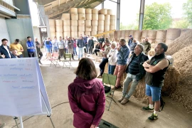 Pour la Nièvre, c'est dans l'exploitation de Laurent Cornu (La Collancelle), membre du GIEE Paillobois, que s'est déroulée la présentation de ce groupement créé en 2015. Issu de la Cuma Terreau (fondée en 2001 autour du compostage de fumiers, puis de la valorisation de bois de haie plaquettes en 2007), le GIEE a deux objectifs : diminuer la dépendance à la paille et valoriser le bois local. Aujourd'hui, la dizaine d'adhérents au GIEE, dont 60 % utilisent des chaudières à plaquettes, représente 5 800 ha de surface agricole utile avec 577 km de haies. Plus en détail, le bois issu de l'exploitation de ces dernières est utilisé en plaquettes pour le paillage des animaux ou pour les chaufferies. Au travers de leurs expériences, les membres du GIEE Paillobois ont souligné que le groupement leur avait permis d'être en apprentissage permanent et de constater la meilleure santé de leurs haies ou encore de pointer le lancement d'une étude en partenariat avec le CPIE de la Puisaye.