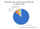 Du côté des variétés, la culture des orges de printemps a pour vocation quasi exclusive la production de malt. Il est donc fortement recommandé de cultiver les variétés pour lesquelles les organismes de collecte locaux ont un marché. Ces variétés sont sélectionnées dans la liste éditée chaque année par les Malteurs et Brasseurs de France. La variété majoritairement cultivée en France et en BFC est RGT Planet. Elle représente 87 % des hectares en BFC. La récente variété préférée Sting se fait une place avec 4 % des surfaces en 2025 (figure 2). C’est une variété productive (+ 5 % / RGT Planet), de bonne qualité technologique et tolérante à la verse. On notera aussi l’arrivée en 2024 de LG Allegro (en validation technologique) qui apporte un gain de productivité significatif, avec un très bon calibrage et un bon comportement vis-à-vis des maladies.