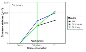 Dans notre référentiel avec une pression larvaire limitée, l’apport d’azote en végétation permet de réduire de 40 % le pourcentage de plantes déformées par les larves par rapport au témoin non fertilisé ; alors que l’apport d’azote au semis permet de le réduire de 30 % (écart significatif avec le témoin mais non significatif entre l’apport au semis et l’apport en végétation).