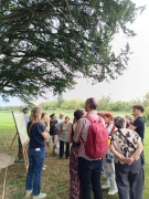 Plus spécifiquement dans la Nièvre, Paul de Lavenne a dessiné 55 parcs agricoles et paysagers dont celui du château de Tâches. Réalisé en 1853, ce parc fut commandité par M. Prosper Robert, propriétaire terrien et membre de la Société départementale d’agriculture de la Nièvre de l'époque. Couvrant 15 hectares aujourd’hui (contre 200 à l’époque), le domaine du château de Tâches témoigne encore de l’aménagement de Choulot avec ses allées courbées de promenade offrant des perspectives intéressantes sur le château ou la campagne environnante, ses différentes pièces d’eau empierrées, points de repos et de flânerie, ou encore ses multiples bosquets d’arbres aux essences indigènes et exotiques, formant un éventail riche de couleurs ou de volumes… Ainsi, c'est cet environnement si singulier qu'une trentaine de participants ont pu apprécier durant la balade organisée par le CAUE. Ils ont pu découvrir les vues et ambiances de ce parcours grâce aux commentaires éclairés de Claire-Hélène Delouvée, paysagiste conceptrice, directrice du CAUE, accompagnée par M. et Mme de Riberolles ainsi que de leur fils Hubert, actuels propriétaires des lieux. La balade a par ailleurs été ponctuée d’extraits de la théorie sur l’Art des jardins portant sur la composition, les principes d’harmonie ou encore le potager, lus par Virginie Jules, documentaliste du CAUE.