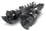 Avec ses nouvelles CR10 et CR11, New Holland est resté fidèle au double rotor axial, mais a complètement remodelé la conception de la machine par rapport aux six autres modèles CR déjà bien connus. Chacun des deux rotors mesure 610 mm de diamètre pour 3,60 m de long. Ils sont entraînés directement par le moteur placé longitudinalement de manière inclinée. Le rotor de gauche sert aussi d’arbre de transmission pour animer le tambour DFR. Cette cinématique limite les pertes d’énergie et dégage de l’espace pour élargir le canal de battage et le caisson de nettoyage. Ce dernier affiche une grande surface, grâce à l’utilisation de deux grilles supérieures et deux grilles inférieures. La qualité de répartition de la paille broyée est contrôlée par des capteurs radar pilotant un automatisme pour corriger le flux.