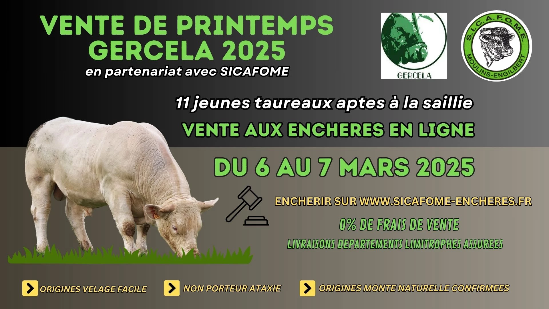« Le Gercela a toujours été dans l'évolution, et afin de continuer sur cette lancée, il paraissait important de proposer une vente aux enchères 100 % en ligne, qui se déroulera du 6 au 7 mars » détaille Jean-Louis Riotte, président du Gercela Charolais. Ainsi, le groupement propose un événement complètement digital pour la vente de 8 jeunes taureaux de l'année, deux de 18 mois et un de 30 mois. La sélection se concentre sur : « les vêlages faciles, sains d'ataxie et les origines « monte naturelle confirmée ». Le début des enchères est fixé à 3 500 euros ; avec 0 % de frais d'achat » pointe Jean-Louis Riotte.